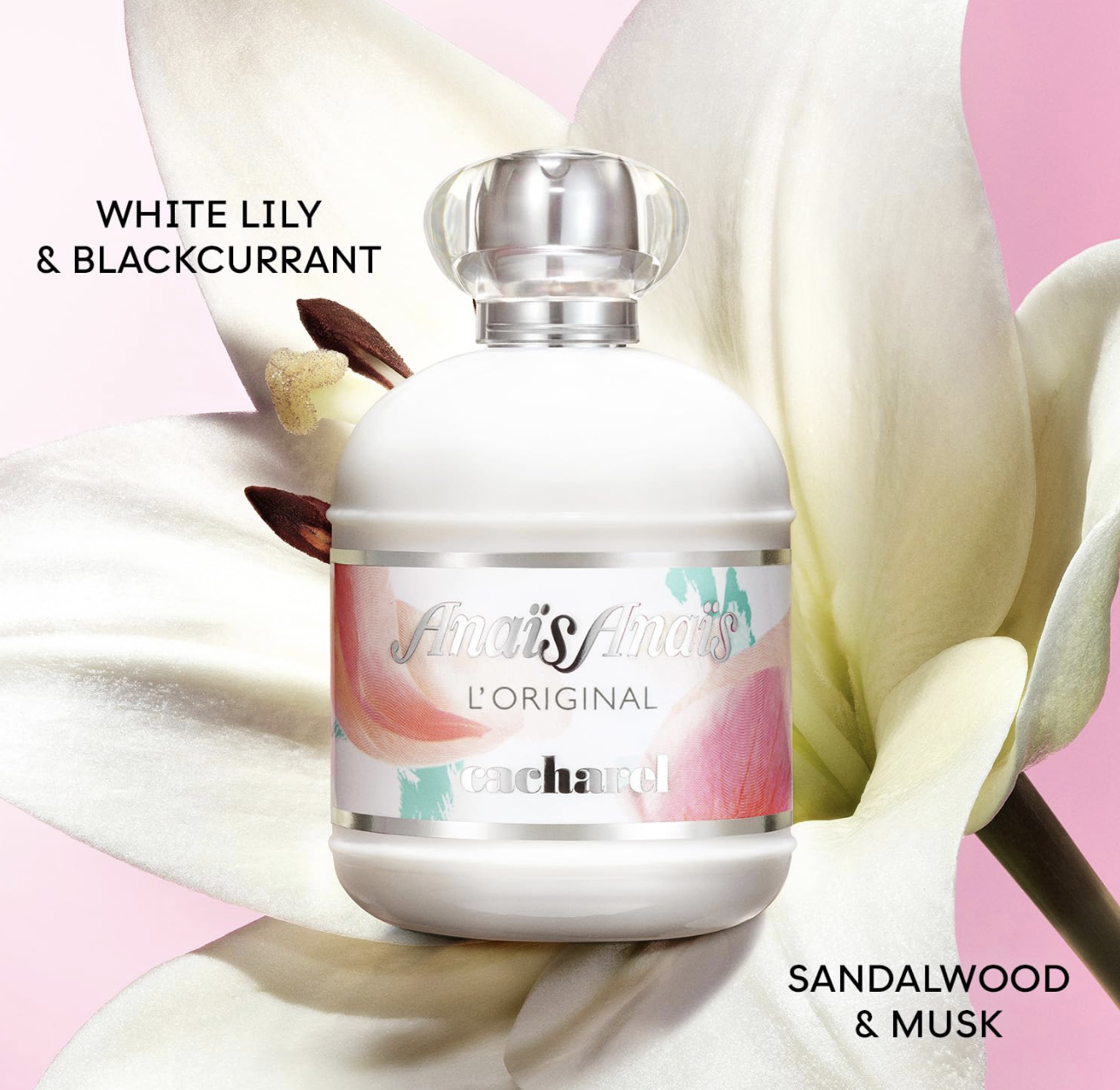 Cacharel Anais Anais (3.4 fl oz, 0.6 lbs) with white lily and musk. Romantic, pure, and feminine classic. 1-year warranty.